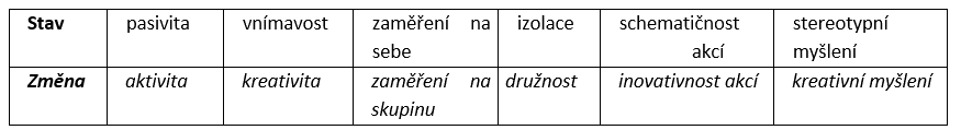 znalosti a kompetence. Změny se týkají oblasti myšlení, přístupu k sociálním